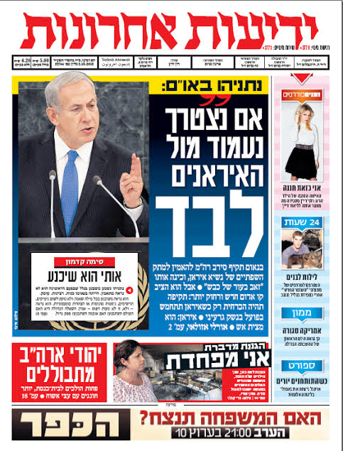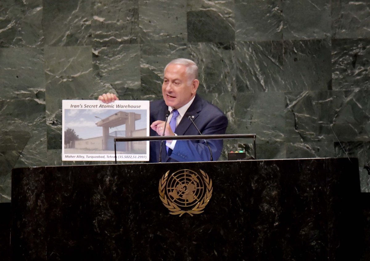 أعلن نتنياهو من على منصة الأمم المتحدة: «إذا اضطررنا، سنقف وحدنا في مواجهة إيران»، مقدماً صورة إسرائيل كدولة مستعدة لمواجهة التهديد النووي الإيراني بمعزل عن المجتمع الدولي.