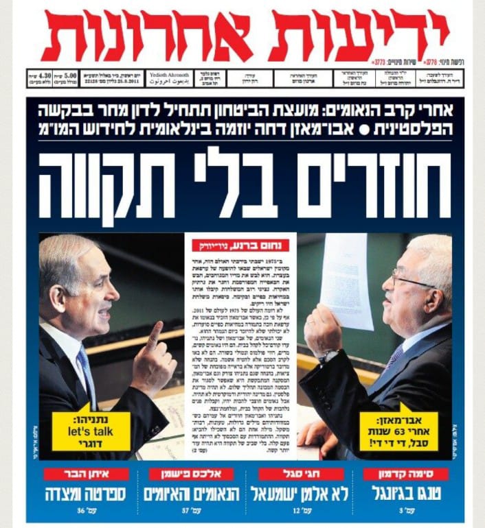 في سبتمبر 2011، صعد نتنياهو إلى منصة الأمم المتحدة ليلقي خطابه الثالث أمام الجمعية العامة، في لحظة فارقة تزامنت مع تقديم محمود عباس طلب الاعتراف بدولة فلسطين.